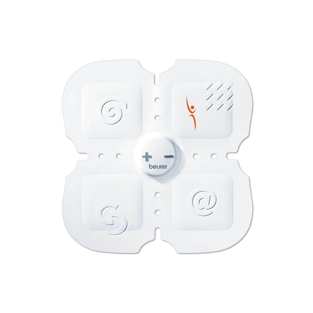Масажорът Beurer ЕМ 20 работи на принципа на електрическата мускулна стимулация (EMS). Употребата му се препоръчва по време на тренировка на коремните мускули с целенасочено прилагане на електростимулация. Устройството е изработено от мек, гъвкав и изключително удобен материал. Има самозалепващ се гел филм с цел плътно прилепване към съответната зона. Напълно безопасен е за употреба. Интензивността може да се регулира в зависимост от нуждите на потребителя.
